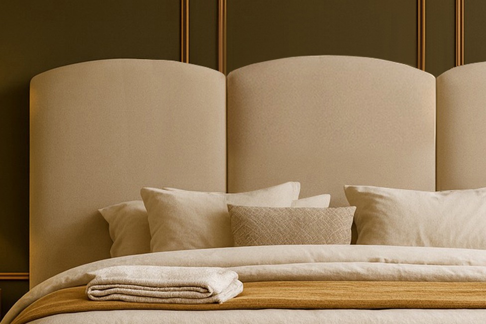 Introducing The Claremont Bed, a masterpiece of modern refinement crafted to bring sculptural elegance and tranquil luxury into your bedroom. Defined by its distinctive triple-panel headboard with graceful, flowing curves, this bed captures the perfect balance between architectural sophistication and inviting comfort. Fully upholstered from headboard to base, its seamless silhouette radiates warmth and softness, while the gently rounded base adds a touch of contemporary charm. Designed to elevate your space with understated elegance, The Claremont Bed transforms any bedroom into a sanctuary of style and serenity.