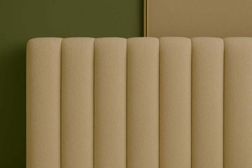 • Tall, Structured Headboard: The Hazel Bed’s standout feature is its tall upholstered headboard, enhanced with vertical detailing that adds both definition and refinement. This striking element creates a sense of height while offering elegant support for relaxation.