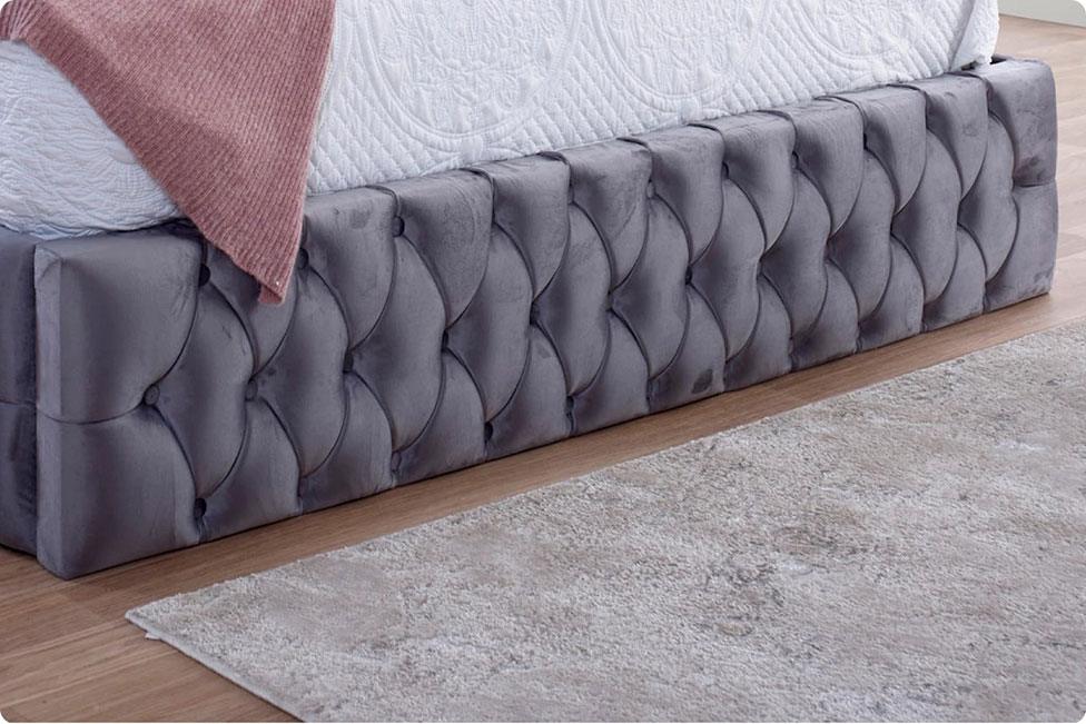 Beneath the plush base lies a spacious storage compartment, ideal for storing bedding, clothing, or seasonal items. The easy-lift mechanism allows for effortless access while maintaining the bed’s clean, luxurious lines.