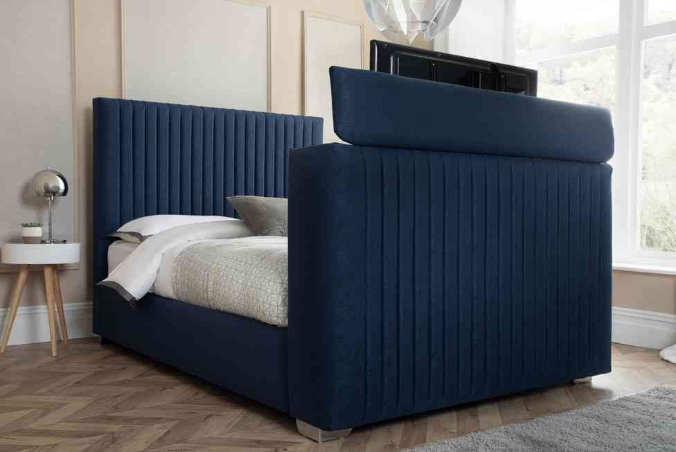 Bespoke Dreamor TV Bed, a fusion of comfort, entertainment, and modern lifestyle. Its built-in TV lift mechanism and premium upholstery offer a unique and luxurious experience. Various base options available, including Ottoman storage. Easy instalments available via KLARNA or CLEARPAY.