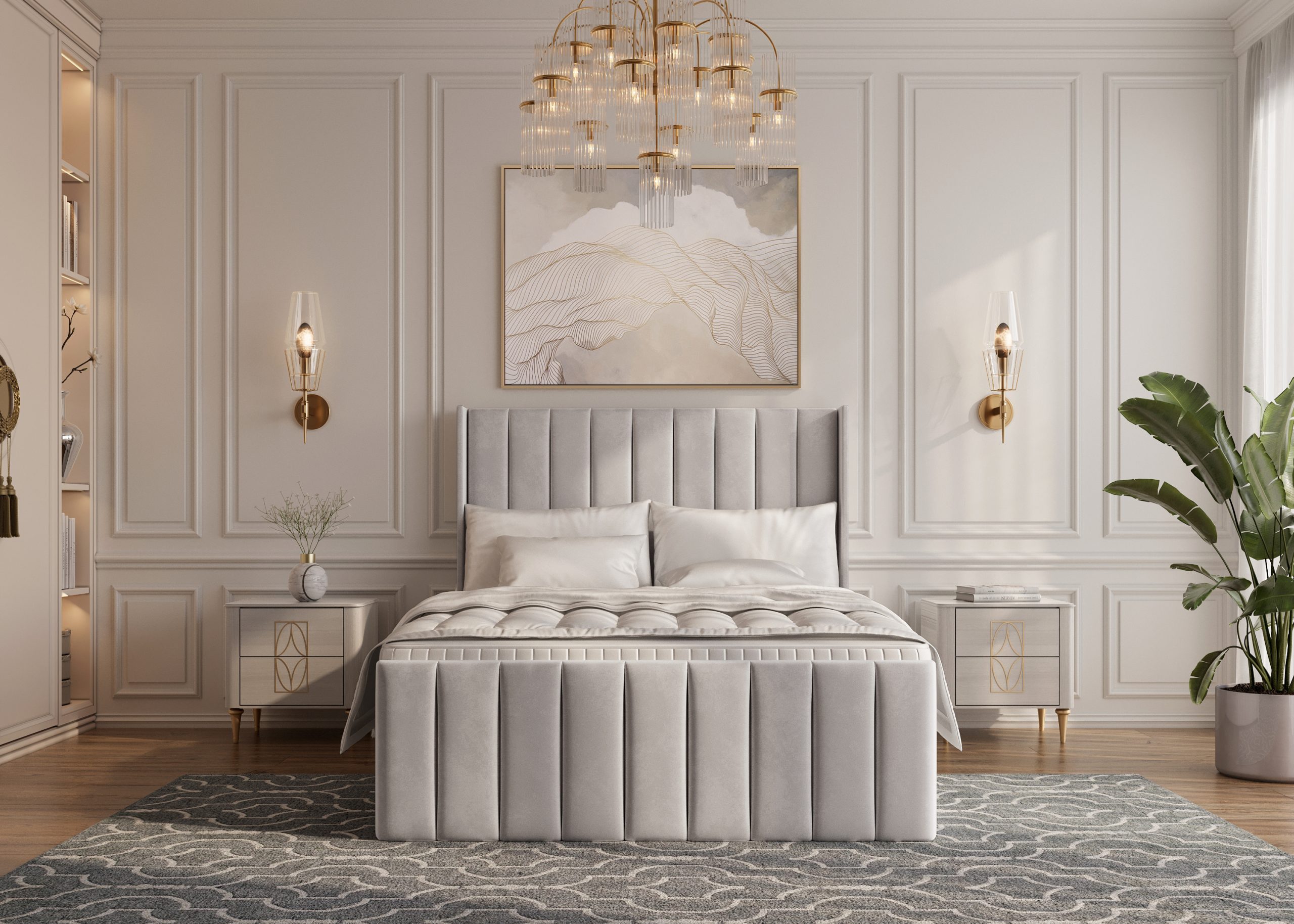 Available in Multiple Sizes: From an upholstered Wellington single bed to a super king—ideal for different room layouts