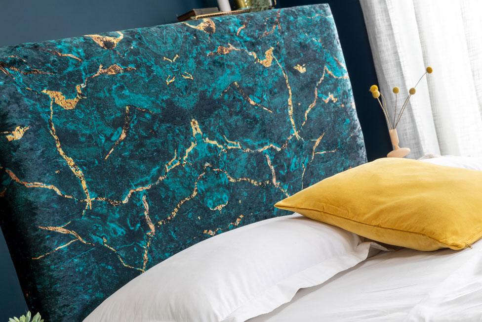 Introducing the Granite Marble Emerald Cavalier Bed, a sophisticated centerpiece that combines modern luxury with timeless sophistication. This bed is thoughtfully designed to bring opulence and comfort to your bedroom, making it the ultimate choice for those who appreciate bold and elegant design. Featuring a tall, flat headboard upholstered in a luxurious marble-inspired pattern, the Granite Marble Emerald Cavalier Bed exudes refinement while offering exceptional comfort. The seamless, premium fabric finish enhances its cohesive and polished aesthetic, while the sturdy frame ensures durability.