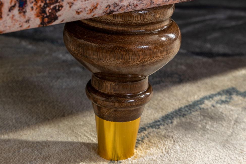 • Elegant Turned Wooden Legs: Beautifully turned wooden legs with intricate detailing support the bed, combining traditional craftsmanship with a touch of modern sophistication.