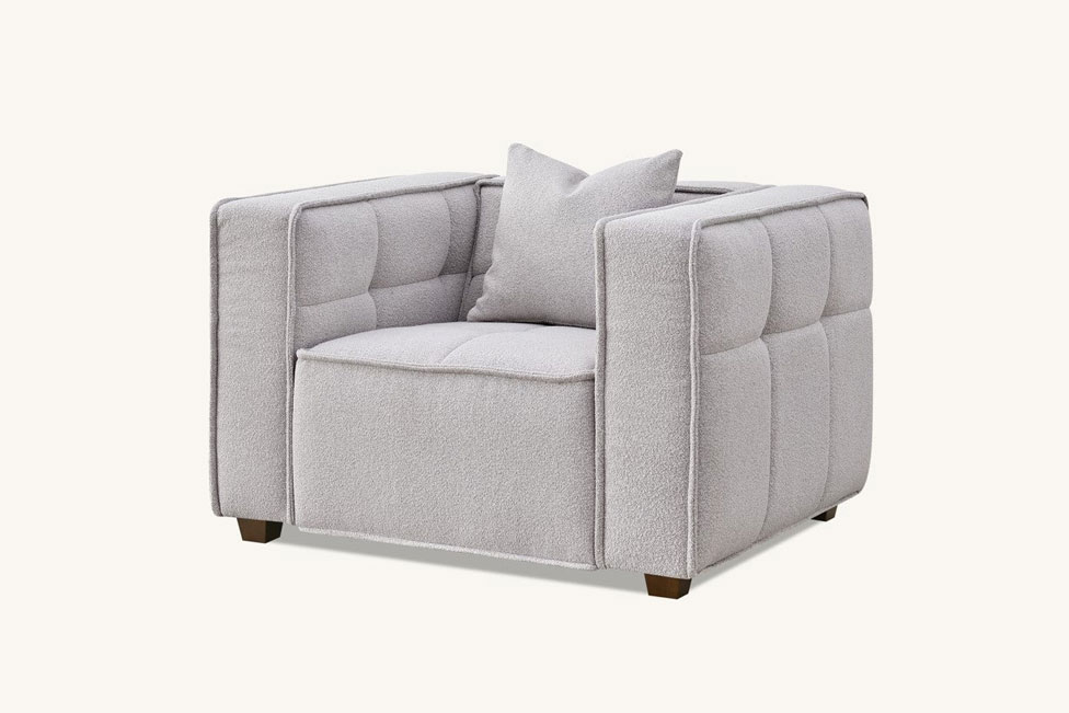Choosing the Mellbour Aveline Chair means inviting modern luxury and elevated comfort into your home. Designed with soft bouclé fabric and a structured profile, it blends indulgence with architectural style, creating the perfect balance of beauty and functionality. Whether placed in your living room, bedroom, or reading nook, this chair offers plush seating and refined aesthetics. Experience a piece designed to enhance your living space with premium craftsmanship and timeless elegance.