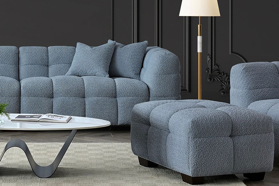 Soft boucle upholstery for tactile warmth