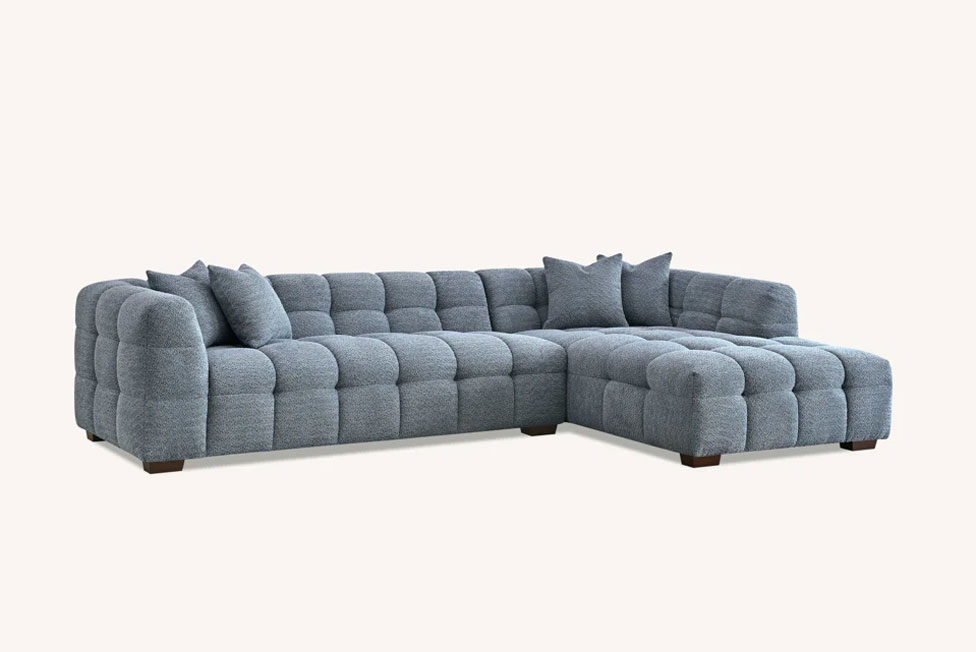 The Mellbour Windsor Corner Group in Iron Boucle Fabric combines timeless sophistication with modern indulgence. Its sculptural silhouette and meticulously tufted detailing elevate the look of any contemporary interior, while the plush seating ensures lasting comfort. Crafted to balance form and function, every contour reflects thoughtful artistry and superior quality. Designed for those who value elegance and ease, this sofa transforms everyday relaxation into an experience of refined comfort and visual harmony.