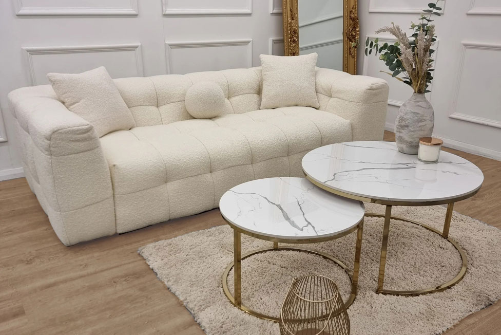 The Mellbour Woodford Bouclé 3 Seater Sofa is more than just seating — it’s a statement of refined living. Crafted with exceptional attention to detail, it merges soft texture, modern design, and comfort in perfect harmony. Its plush bouclé upholstery and artistic tufting bring warmth and visual depth to any room, while the durable structure ensures long-lasting luxury that never goes out of style.