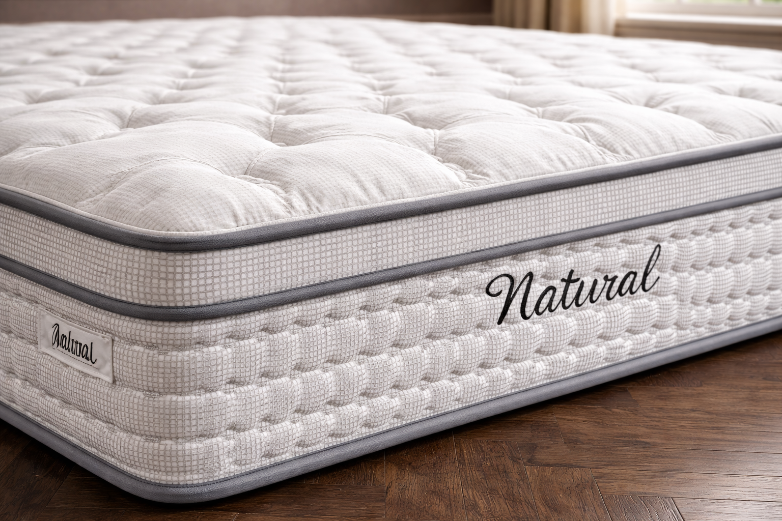 The high-density Laurel Natural mattress combines wool and a breathable spring system to improve airflow and reduce heat, enhancing sleep comfort.